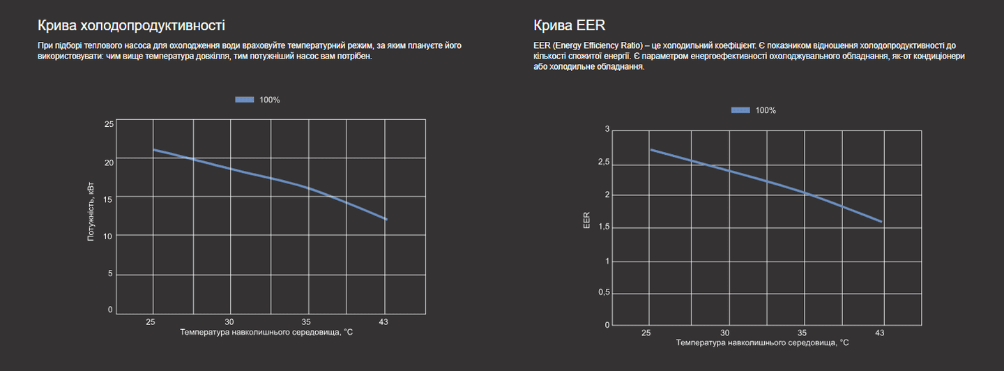Надійність роботи гарантує компресор Mitsubishi, який ефективно функціонує при температурі зовнішнього повітря від +15 до +43 °C. Система підігріву картера та піддона запобігає гідроударам і обмерзанню при низьких температурах. Діапазон нагріву води — від +9 до +40 °C, охолодження — до +8 °C, що робить модель придатною для цілорічного використання.