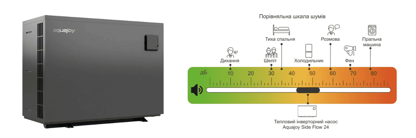 Тепловий насос Aquajoy Side Flow 24 — тиха ефективність та зручність для вашого басейну