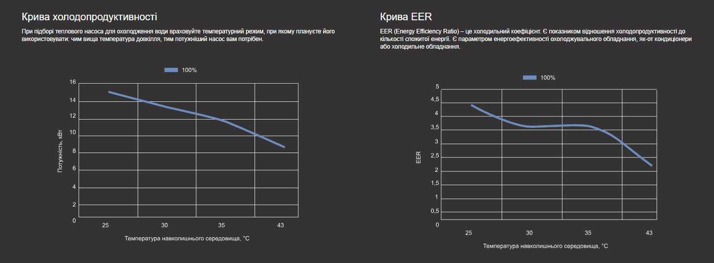 Максимальна теплова потужність пристрою становить 28 кВт, а коефіцієнт продуктивності (COP) сягає до 16,0 — це один із найвищих показників у своєму класі. Насос працює у діапазоні температур повітря від -10 до +43°C, забезпечуючи підігрів води від +9 до +40°C, а також охолодження в межах +8 до +28°C. Це робить Aquajoy Side Flow 28 придатним для використання цілий рік.