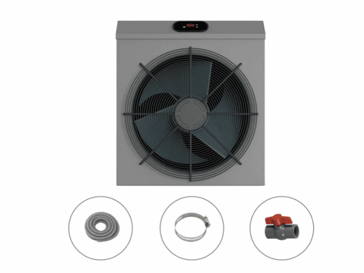 Це не лише економічний і стильний варіант, але й високоефективний та енергоефективний пристрій, який може нагріти воду від 15 до 40°C при температурі повітря від 10 до 43°C всього лише з 0.8 кВт енергії. Його титановий теплообмінник і міцний металевий корпус забезпечують надійну роботу навіть з хлорованою і солоною водою, роблячи його ідеальним вибором для будь-якого типу басейну.