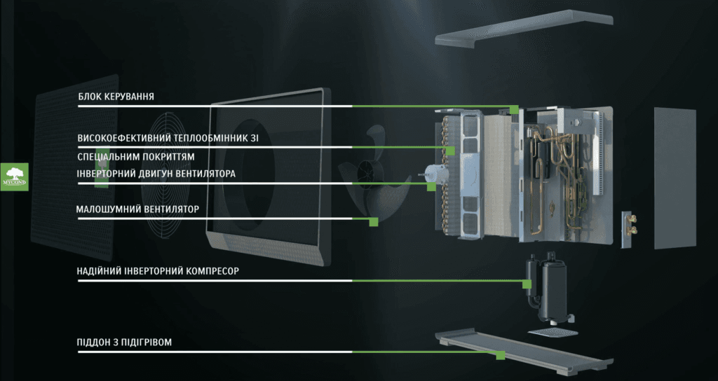 Теплові насоси MYCOND BeeSmart— ідеальне рішення для бюджетних систем опалення та кондиціонування, яке забезпечить комфорт у вашому будинку за невеликі витрати. Зовнішній блок має привабливий дизайн і мінімальний шум, а використання екологічного холодоагента R32 робить систему екологічно чистою. Тепловий насос BeeSmart максимально ефективно використовує енергію повітря для забезпечення комфорту в будинку взимку та влітку. Регулятор з кольоровим сенсорним екраном спрощує управління, а додаток для смартфону робить його ще зручнішим.