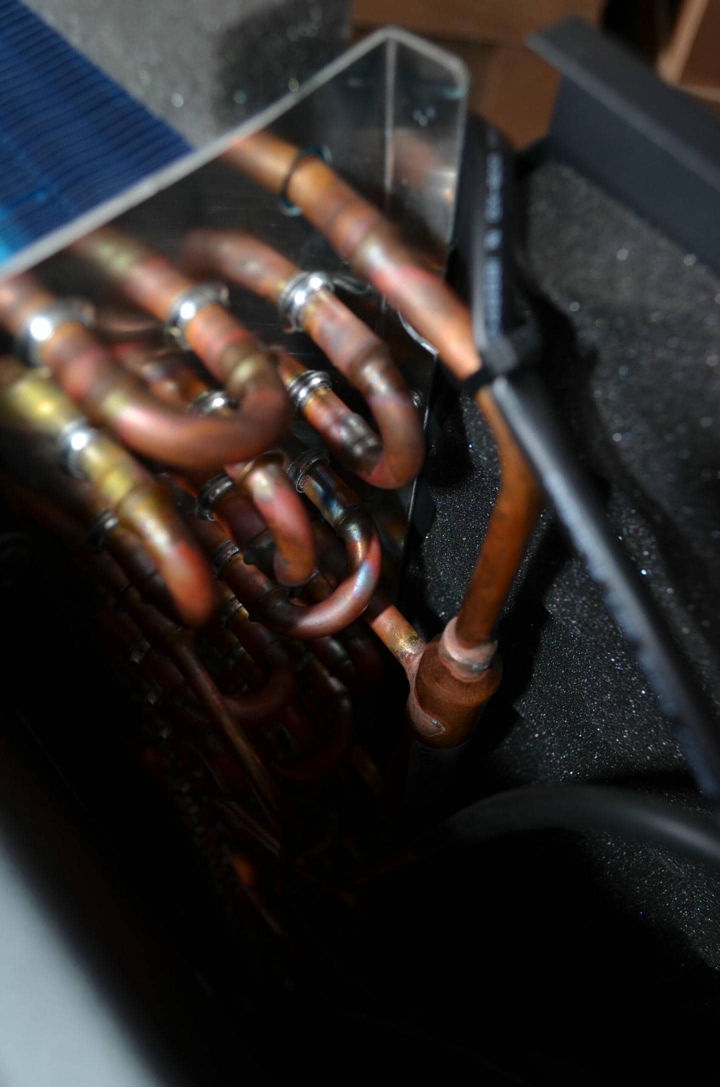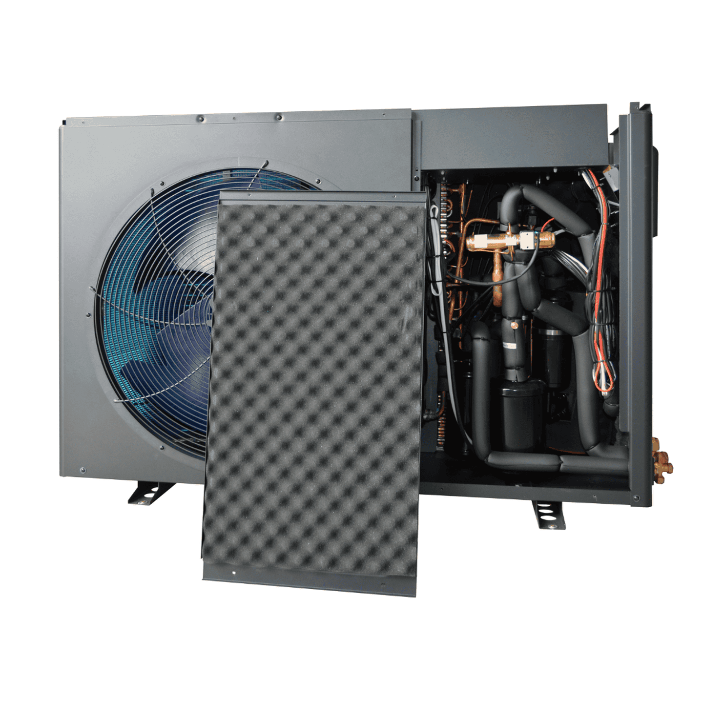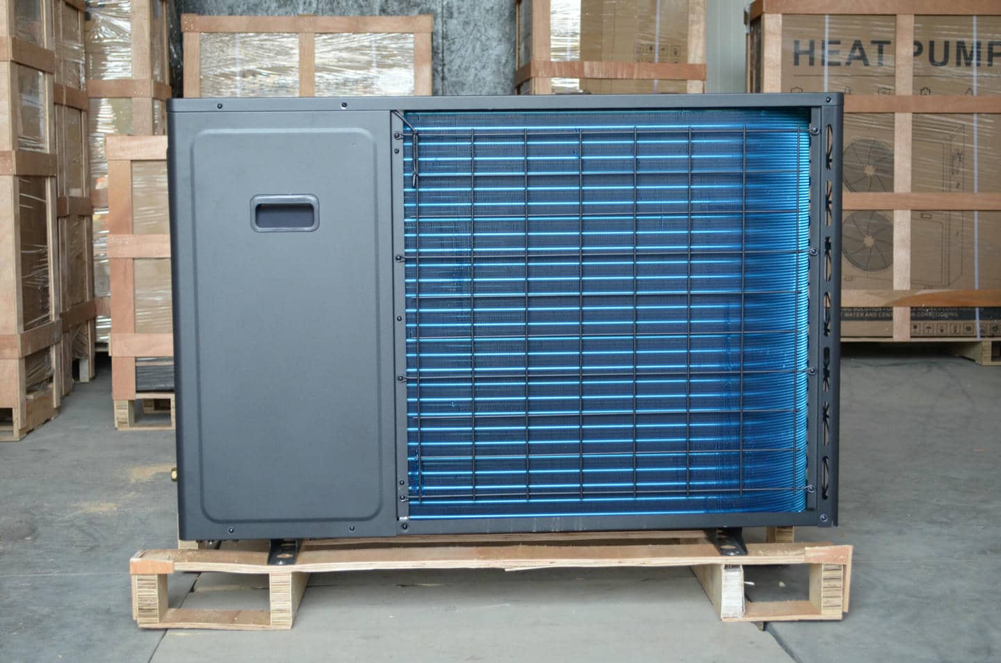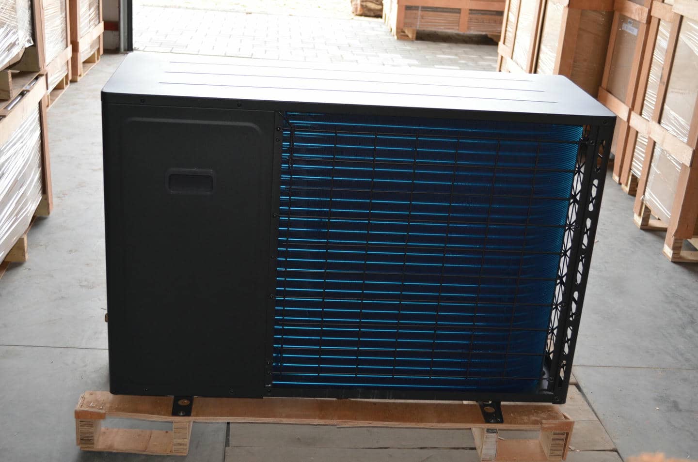 Під час роботи насос залучає зовнішнє повітря через цей теплообмінник. Низькотемпературне повітря збагачується теплом, що витягується з холодоагенту, і стає теплішим.