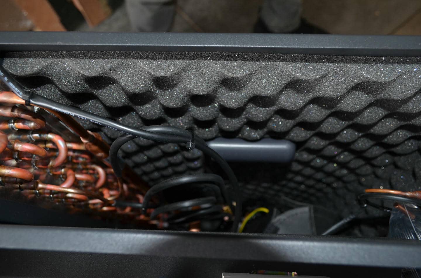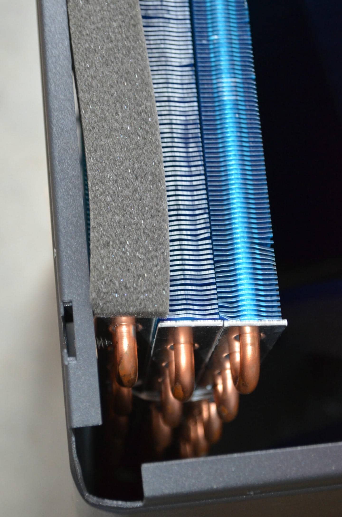 Гаряче повітря після передачі тепла повітрю назовні викидається через передні решітки вентиляторів.