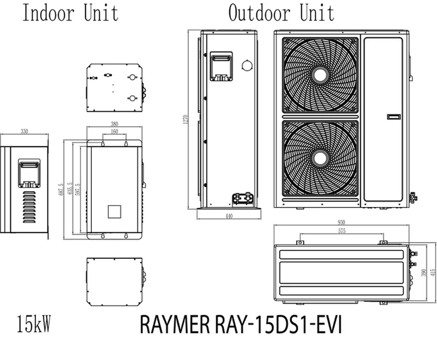 3. Тепловий насос повітря-вода Raymer RAY-18DS1-EVI на 18 кВт, інвертор до -30°C, спліт-система до 180 кв.м. 220в
