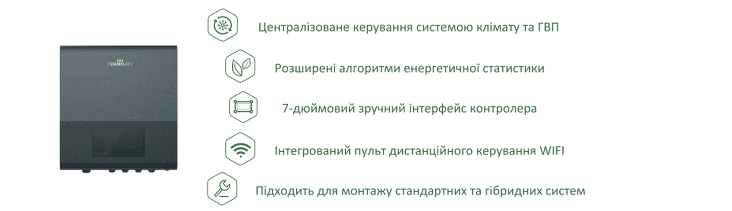 Тепловий насос Termojet Hi-Master V 90HCR5INVM2V з модулем керування СМ10 — це сучасне рішення для опалення, охолодження та забезпечення гарячою водою житлових будинків площею до 90 квадратних метрів. Він відповідає новітнім європейським стандартам енергоефективності та працює дуже тихо, тому не створює дискомфорту для мешканців і сусідів.