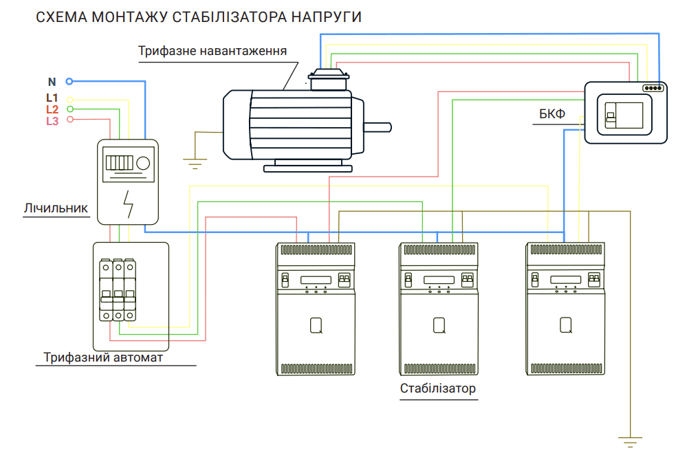 ТИП ПРИЛАДУ: Стабілізатор трифазний напруги 3 шт. по 14 кВт + блок контролю