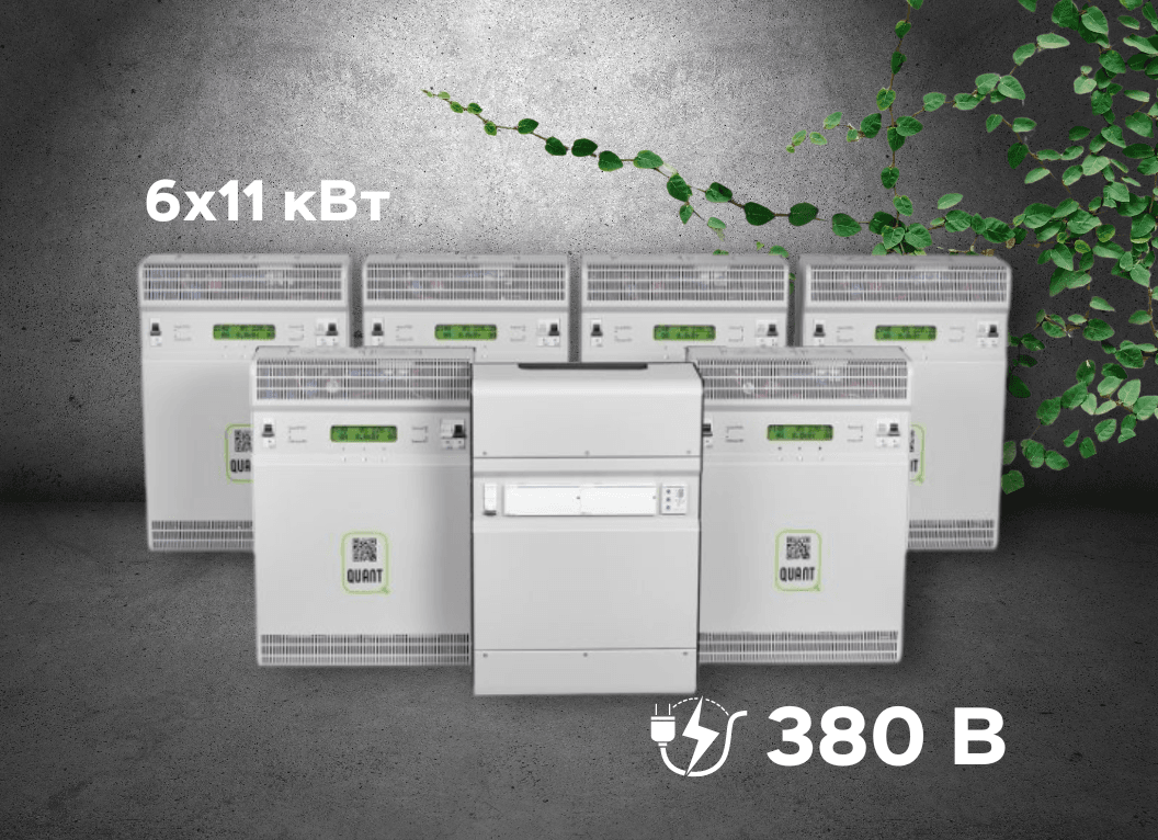 Трифазний Quant-66 інверторний стабілізатор напруги настінний, потужність 66 кВт (6х11 кВт) на 380V (Квант)