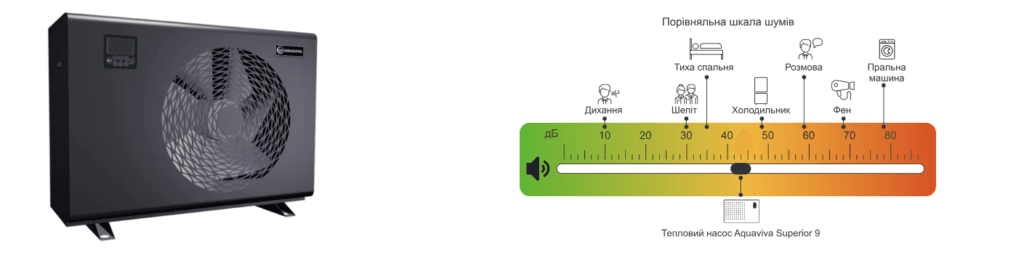 Зменшений рівень шуму: Завдяки використанню тихого інверторного компресора і повноінверторної вентиляції, інверторний насос Aquaviva Superior значно тихіший звичайних моделей. При досягненні заданої температури насос переходить у режим економії, використовуючи 25-80% своєї потужності, що дозволяє значно знизити рівень шуму під час його роботи і забезпечити комфортне використання.