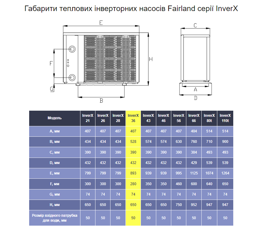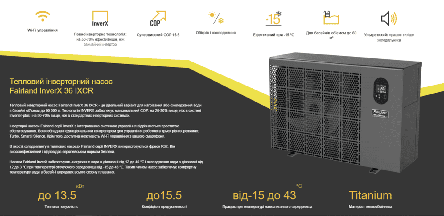 ПРИЗНАЧЕННЯ: Тепловий насос Fairland InverX 36 для басейну