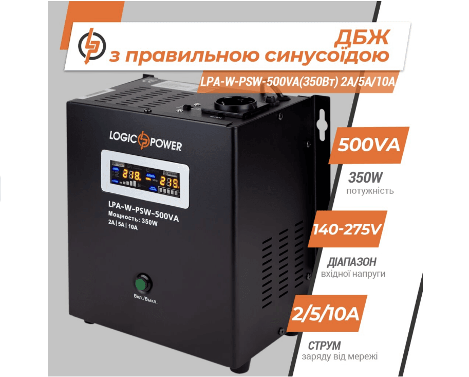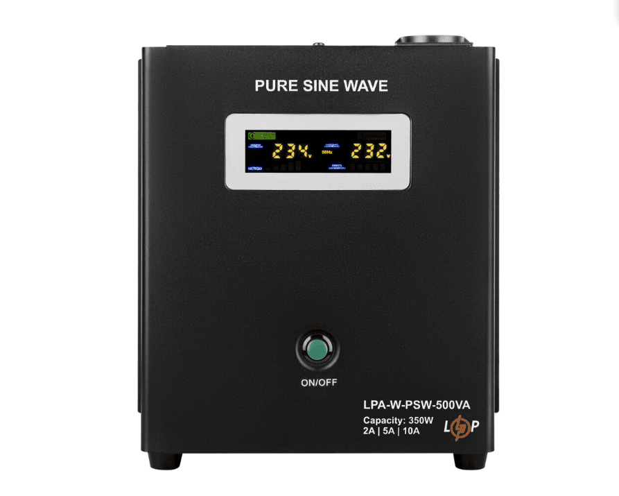 ДБЖ з правильною синусоїдою LPA-W-PSW-500VA (350Вт) 2A/5A/10A має потужність 500/350 Вт.