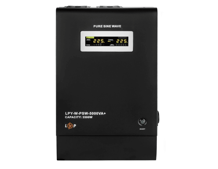 ДБЖ з правильною синусоїдою LPY-W-PSW-5000VA+ (3500Вт) 10A/20A має потужність 5000/3500 Вт.