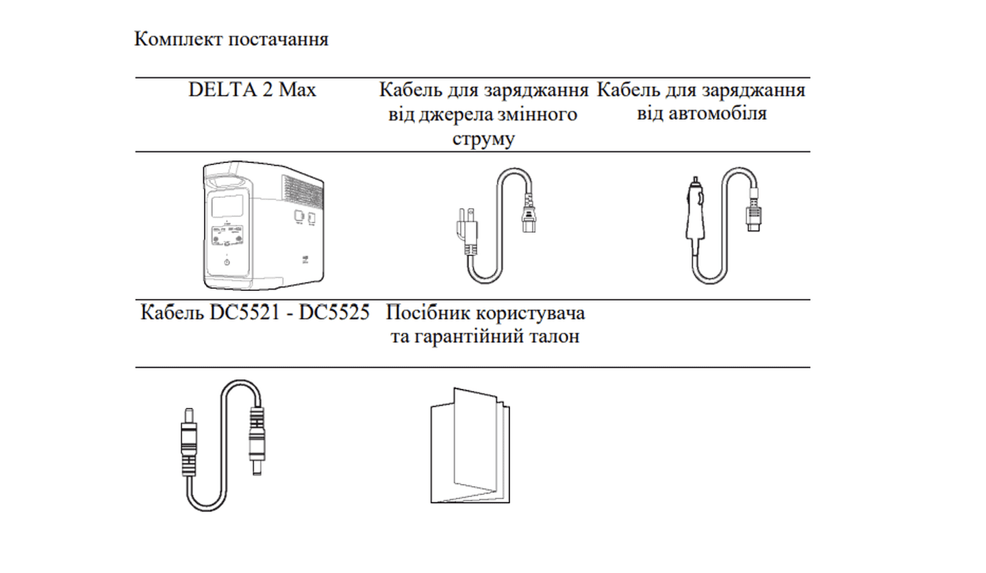 *Ємність станції вказана як характеристика вбудованої акумуляторної батареї. Час роботи станції може змінюватись в залежності від умов використання: способу підключення та величини навантаження, температури зовнішнього середовища тощо.