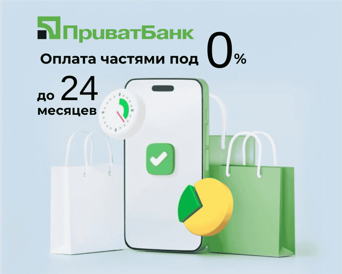 ![]() | Покупка частями от ПриватбанкаПолучите карту Приватбанк в отделении или в приложении Приват24 и узнайте свой лимит (для получения карты перейдите на сайт privatbank.ua).