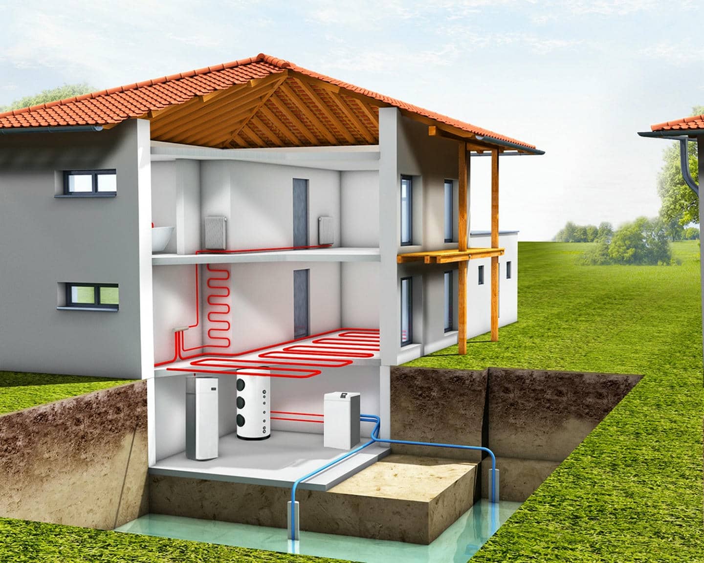Если же площадь ограничена, стоит рассмотреть систему с вертикальными скважинами для геотермальных насосов. Хотя такое решение требует больше строительных работ и повышает затраты на монтаж, оно позволяет сэкономить пространство и сохранить окружающий ландшафт.