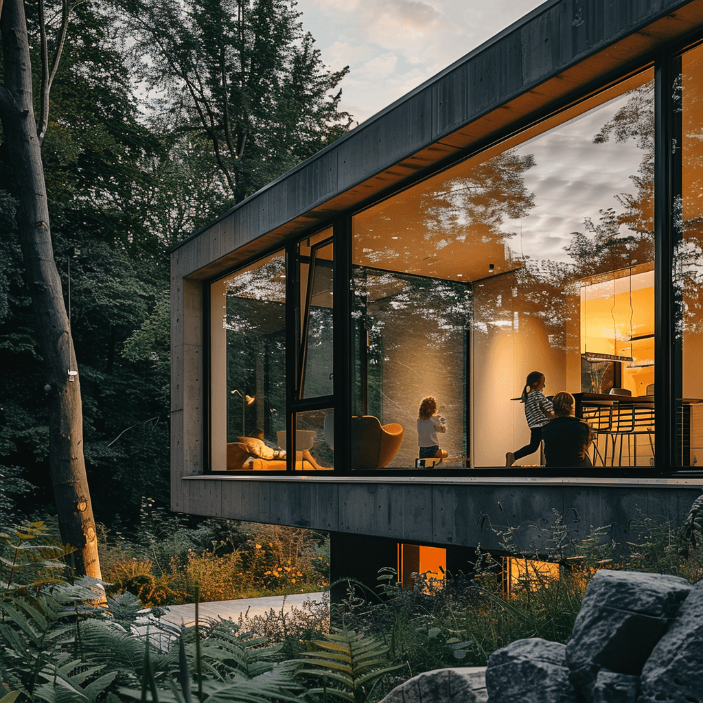 Архитектурно симпатичный дизайн; гармония между природой и домом.