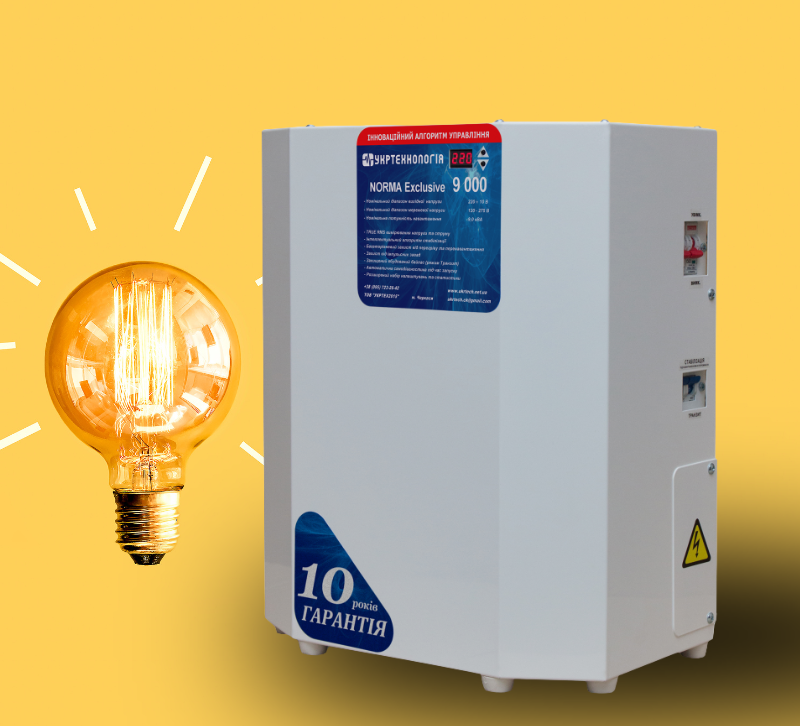 - Укртехнологія NORMA Exclusive 9000 – однофазний тиристорний стабілізатор 9 кВт від компанії «Укртехнологія», модель підвищеної точності (Exclusive).