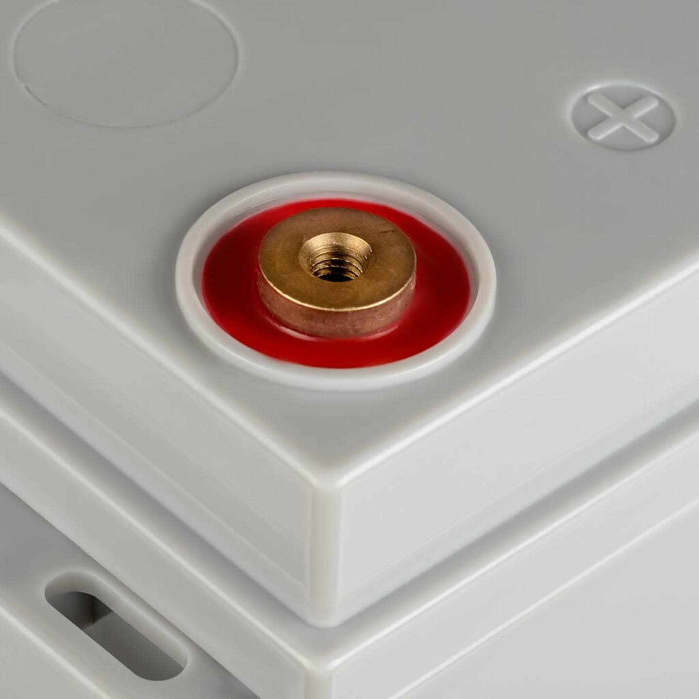 • Аккумулятор можно устанавливать в жилых помещениях. Вязкая структура электролита и полная герметичность корпуса исключают утечки кислоты и гарантируют отсутствие вредных испарений.