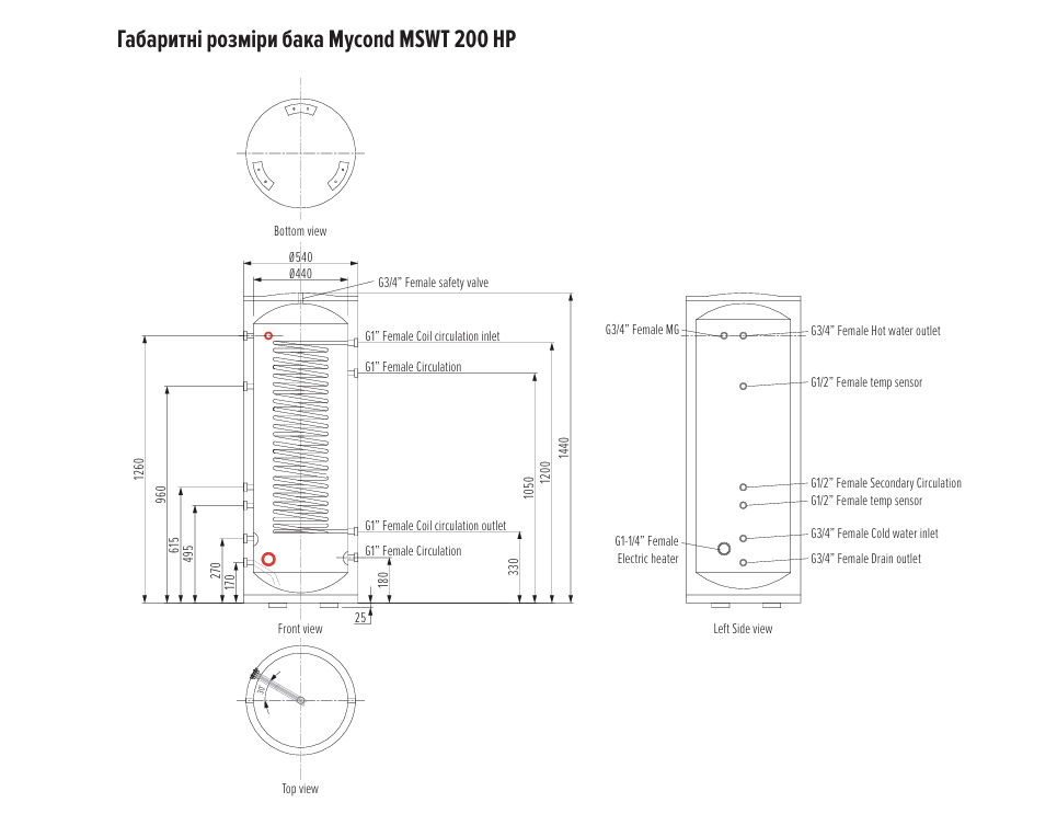 Бак MSWT HP — это надежное решение для бытовых и коммерческих систем ГВС, обеспечивающее стабильную и эффективную работу даже при низких температурах теплоносителя.