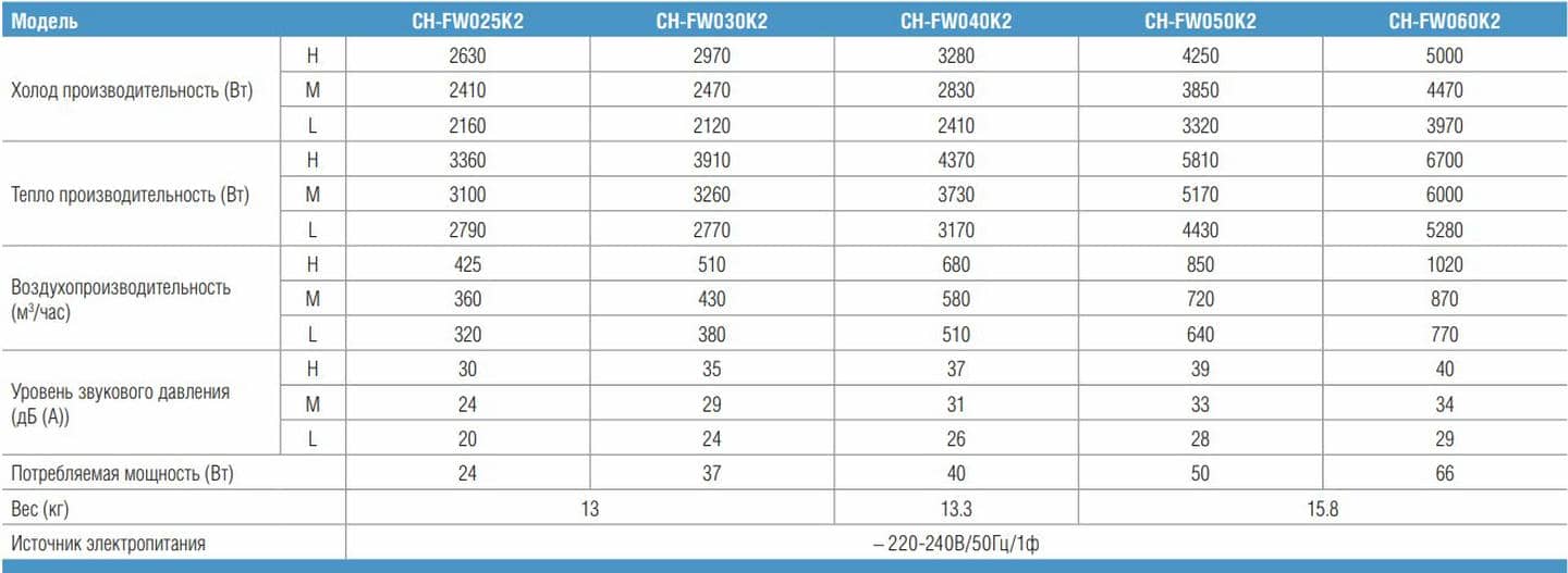 Основных характеристики настенного фанкойла Cooper&Hunter CH-FW40K2A: