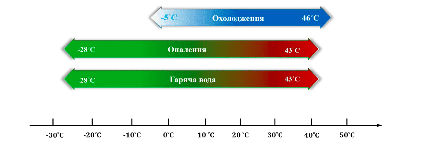 - Широкий рабочий диапазон температур: Эффективно работает при различных температурах воды и наружного воздуха.