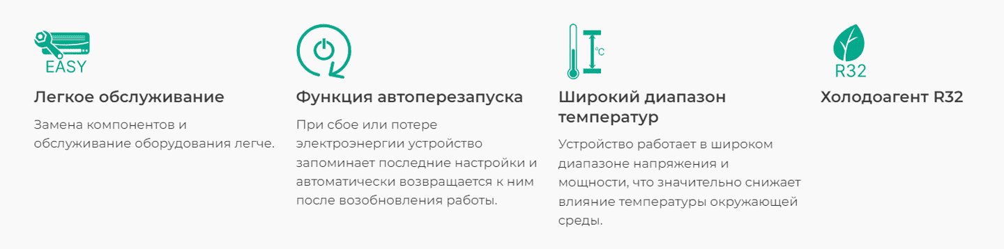 - Энергоэффективность: Благодаря использованию инверторной технологии и хладагента R32, тепловой насос отличается высокой энергоэффективностью и экологичностью.