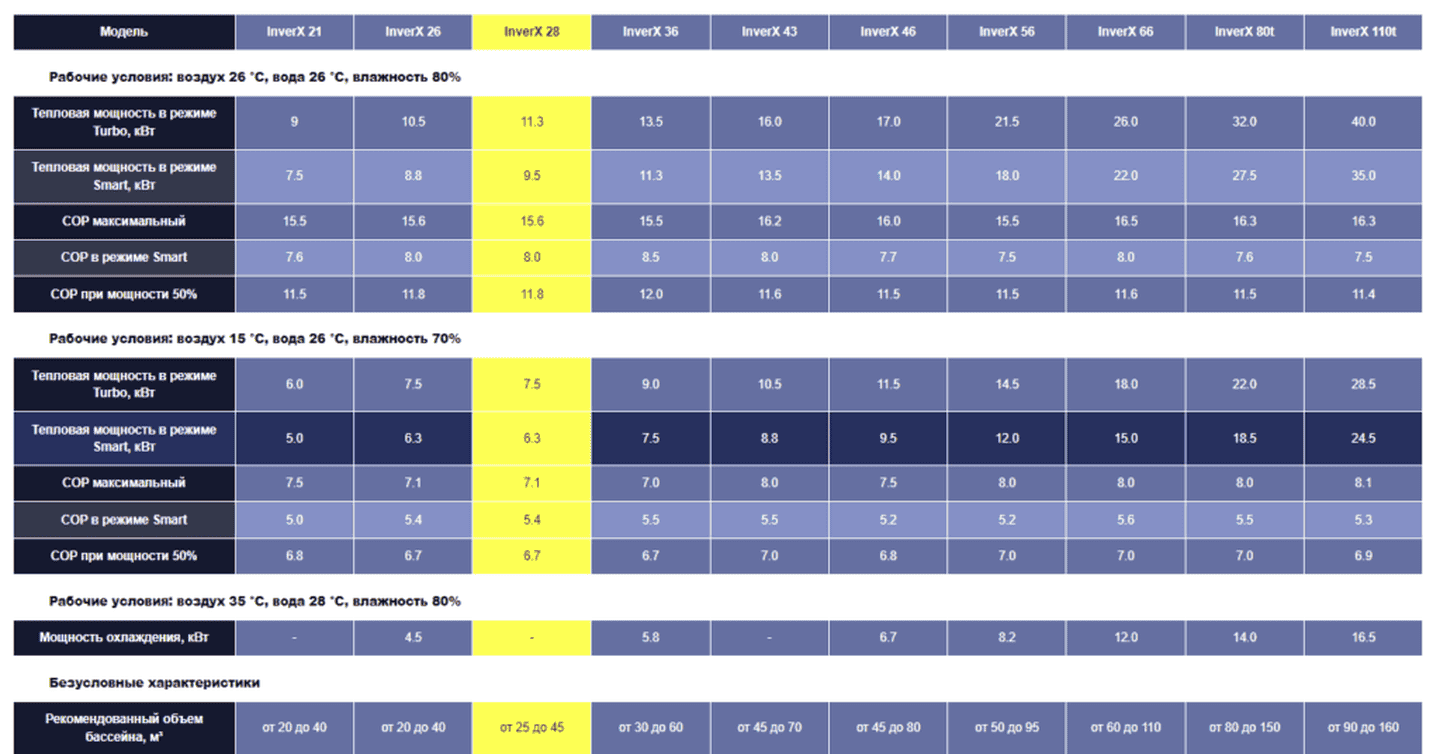 Характеристики теплового насоса Fairland InverX 28 IXCR: