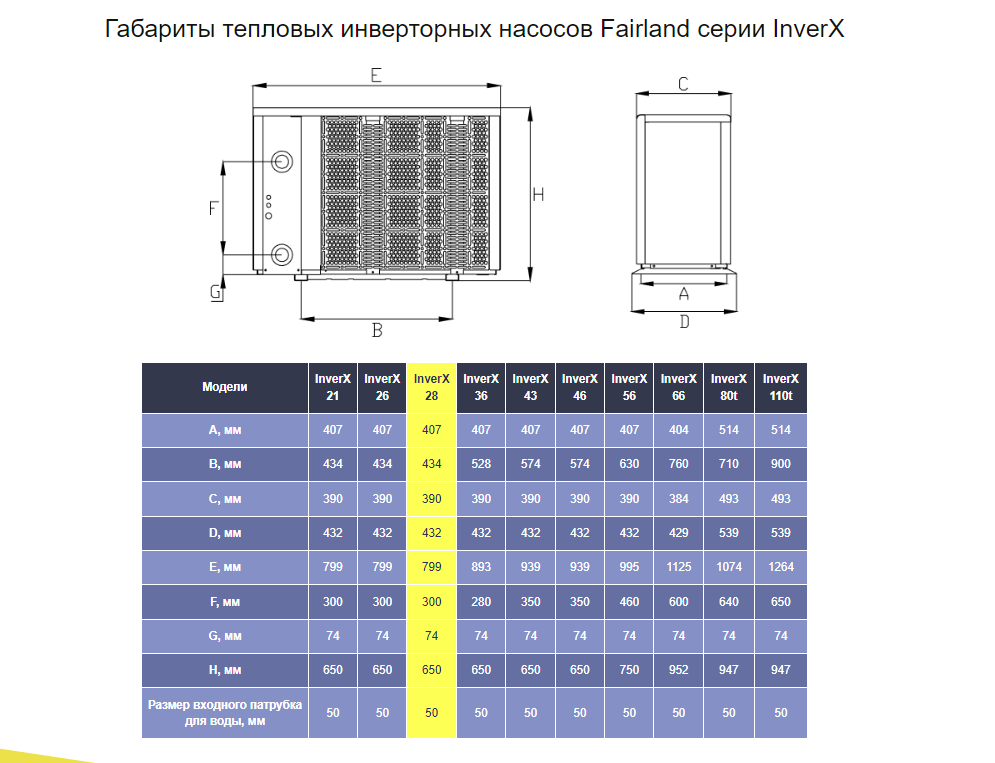Характеристики теплового насоса Fairland InverX 28 IXCR: