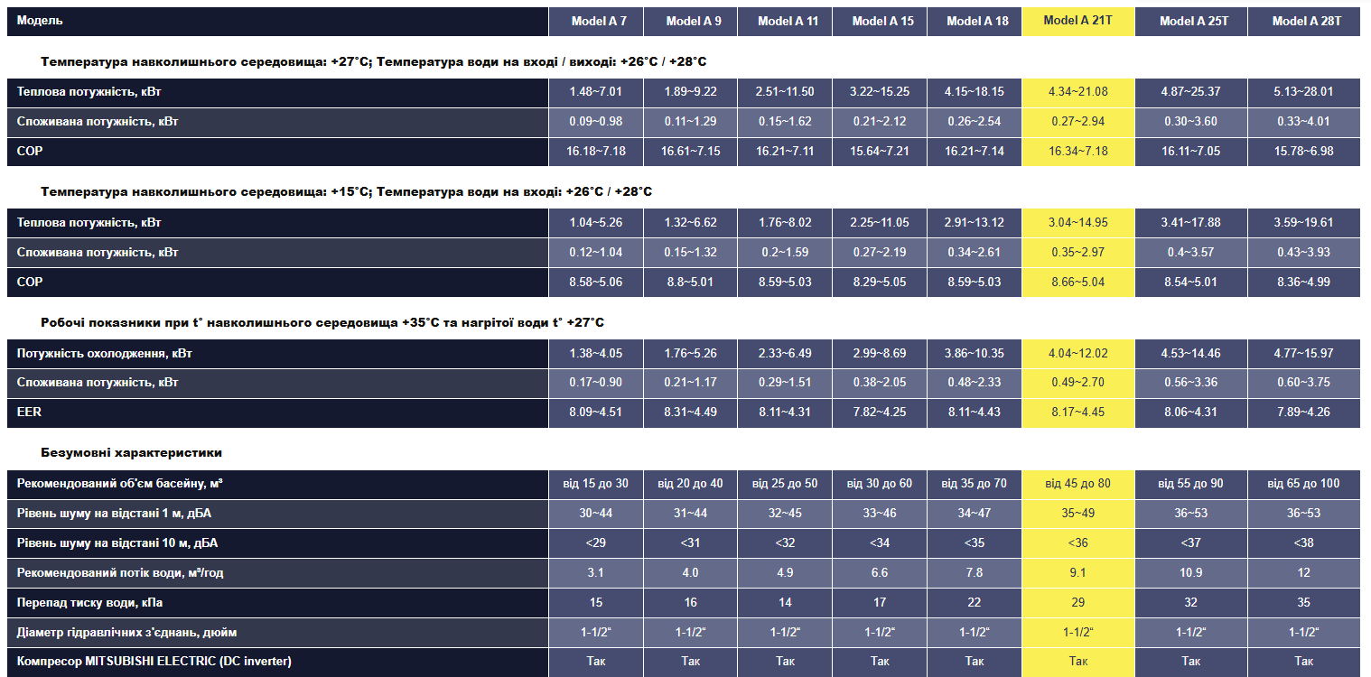 Характеристики теплового насоса Aquajoy Model A 21Т: