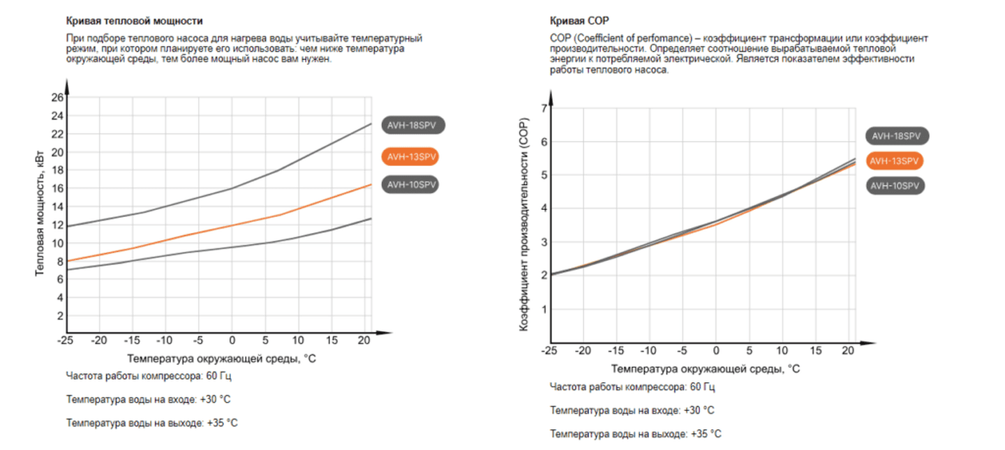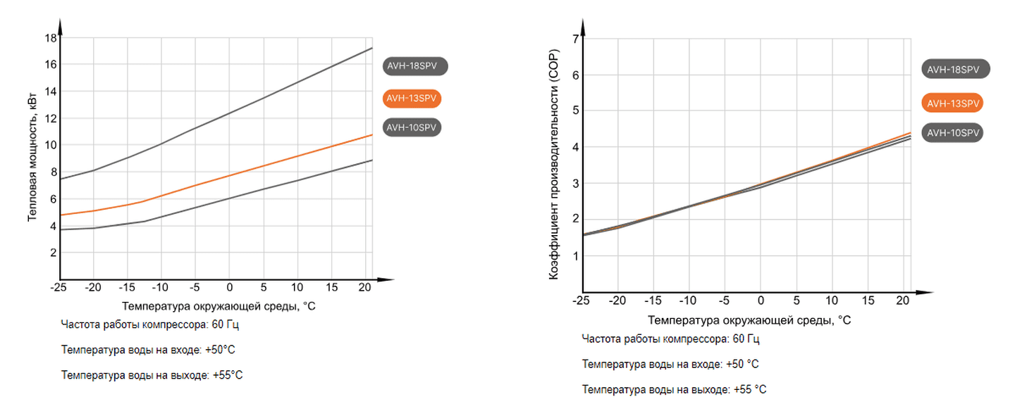 • Высокая производительность: Даже при низких температурах снаружи, система поддерживает эффективное отопление и нагрев воды.