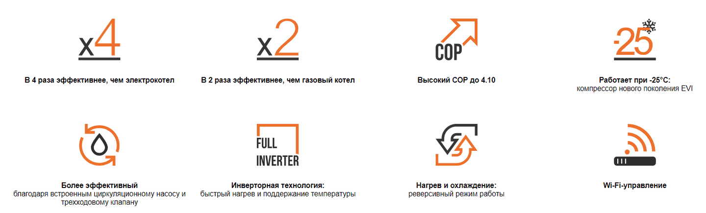 • Температура нагрева воды: до +55°C даже при -25°C на улице