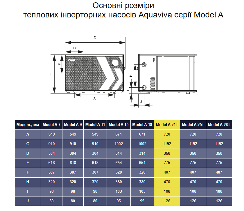 Характеристики теплового насоса Aquaviva Model A 21Т: