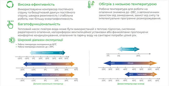 НАЗНАЧЕНИЕ: Инверторный тепловой насос CHIGO GCHV CLP-V12HW/DR4 для отопления, охлаждения и ГВС