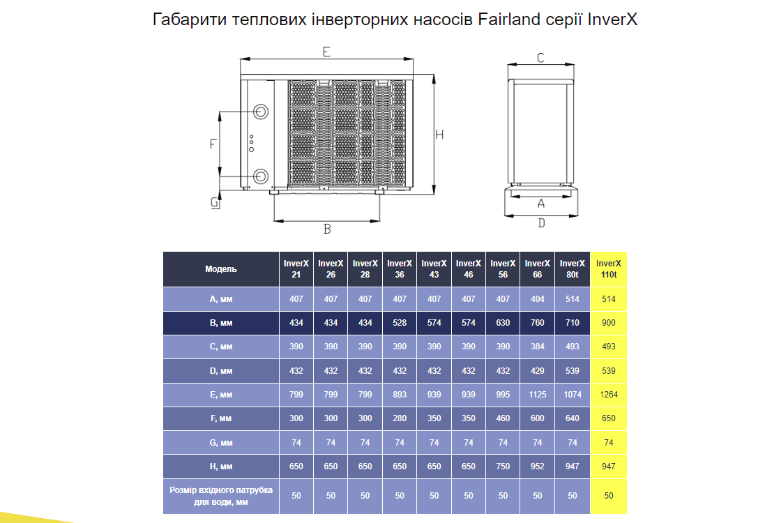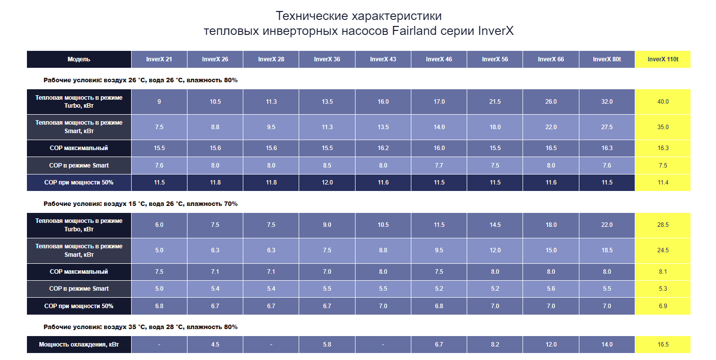 Характеристики теплового насоса Fairland InverX 110Т IXCR: