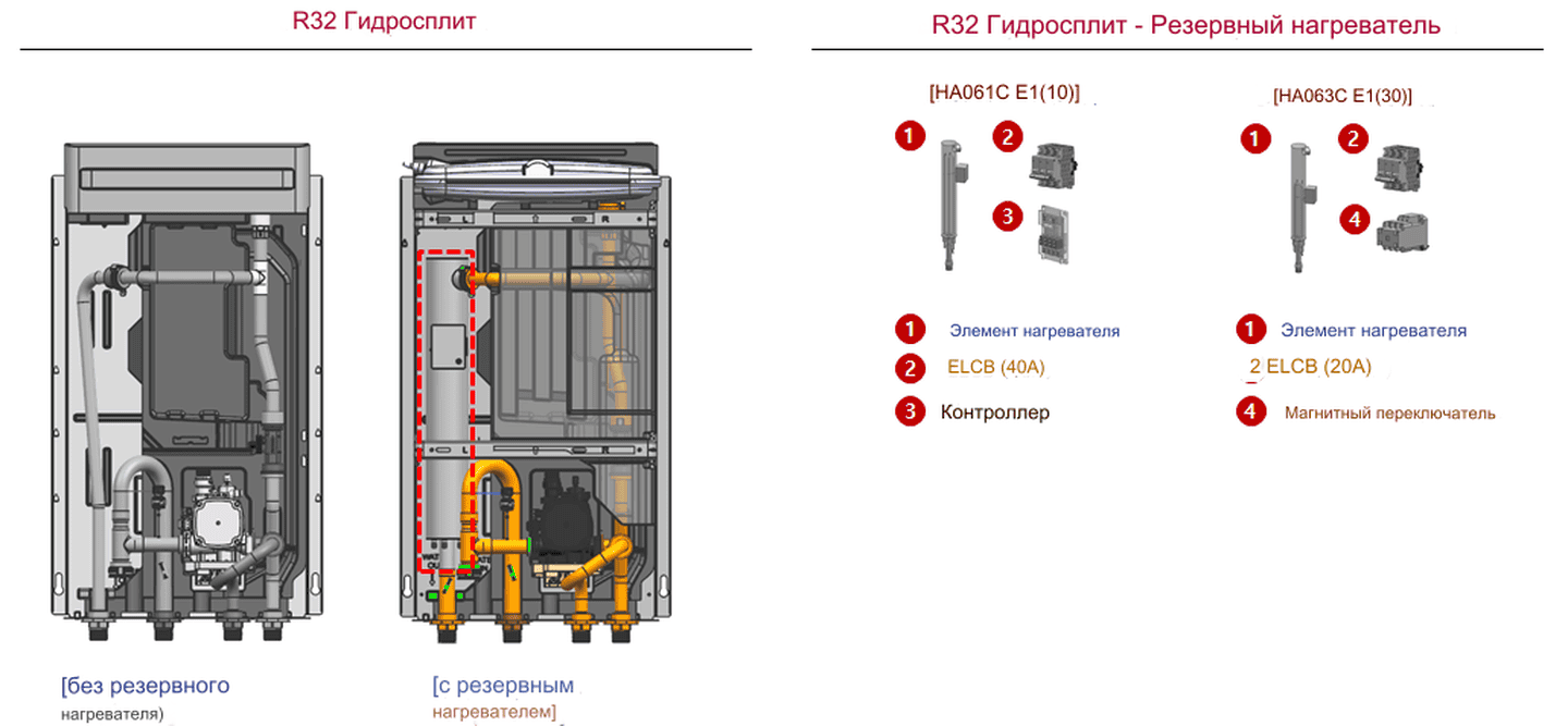 • Встроенный резервный электрический нагреватель (6 кВт, опция).