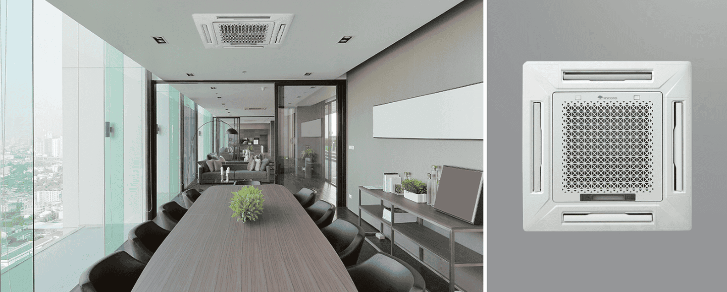 Компактная конструкция для эффективной установки: Кассетный фанкойл Mycond серии MCFK-05T2 имеет оптимальные размеры корпуса 570 х 570 мм, что делает их идеальными для установки в стандартных системах подвесного потолка с модулем 600 х 600. Это упрощает процесс монтажа и позволяет быстро и легко установить фанкойл без дополнительных усилий.