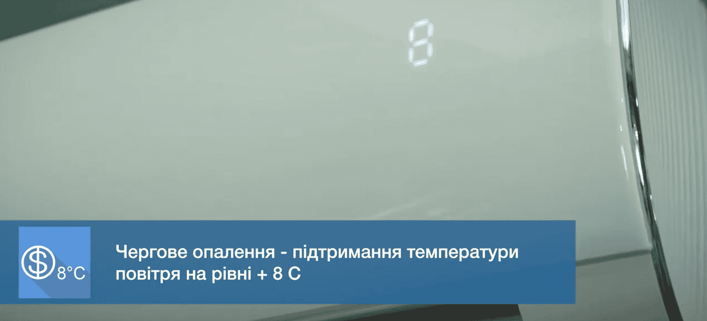 • Функция +8°C — предотвращает замерзание помещения при длительном отсутствии, поддерживая минимально комфортную температуру при низком энергопотреблении.