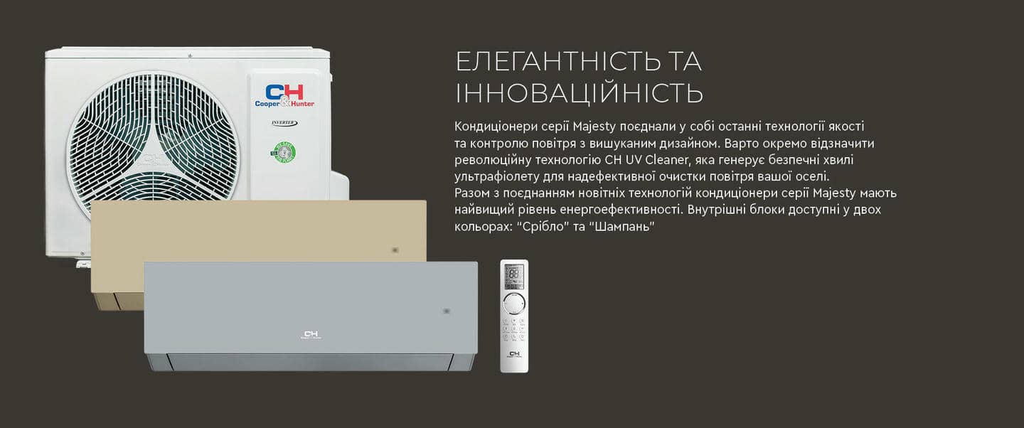 Cooper&Hunter Majesty — это инновационный кондиционер премиум-класса, который сочетает в себе передовые технологии, высокую энергоэффективность и стильный дизайн. Благодаря инверторной системе, технологии ультрафиолетовой очистки воздуха, функции самоочистки и ионизации, устройство обеспечивает комфортный микроклимат и чистоту воздуха в помещении.