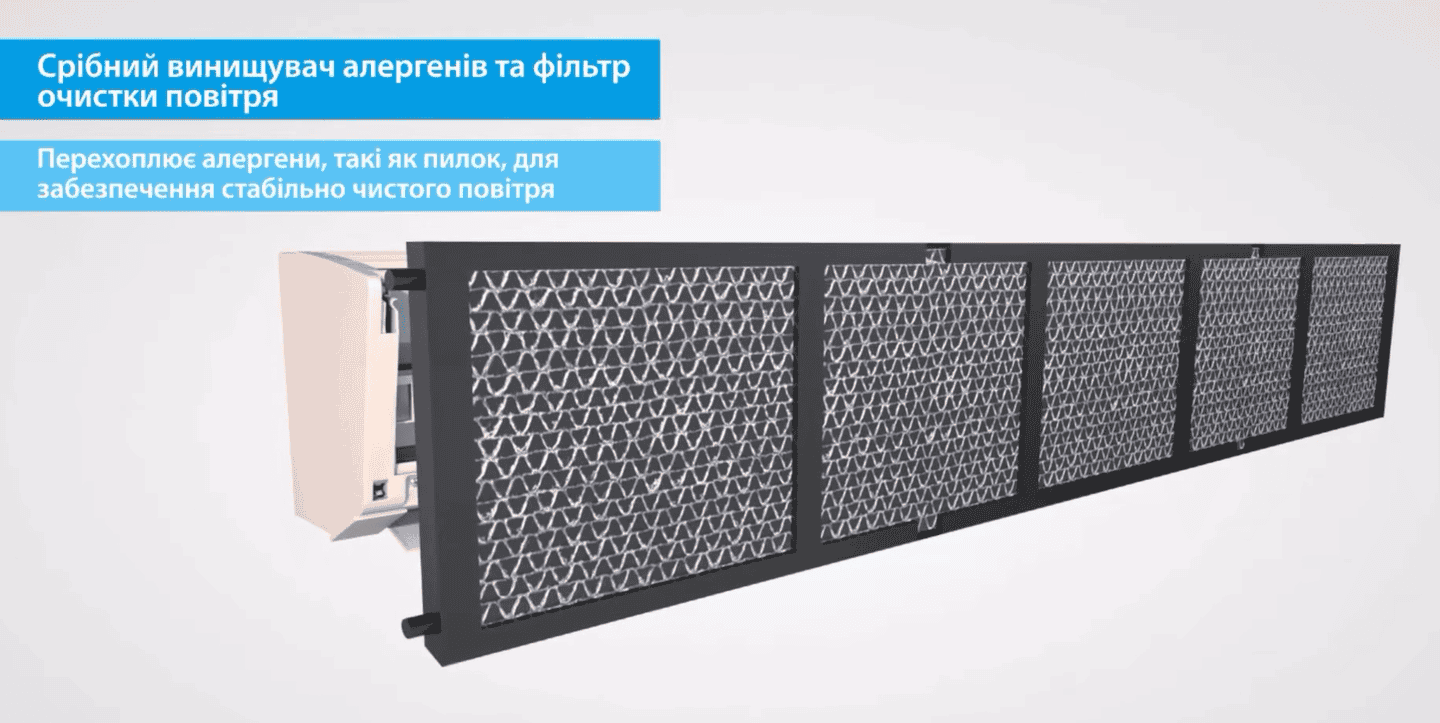 Серебряный фильтр для очистки от аллергенов: Фильтр с ионами серебра задерживает аллергены, включая пыльцу и другие вредные частицы, обеспечивая стабильную подачу чистого воздуха.