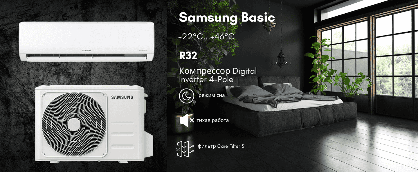 Be the first to review “Кондиционер Samsung Basic AR09TXHQASINUA 2,6 кВт, до 25 кв.м, фреон R32, инверторный до -22°C”