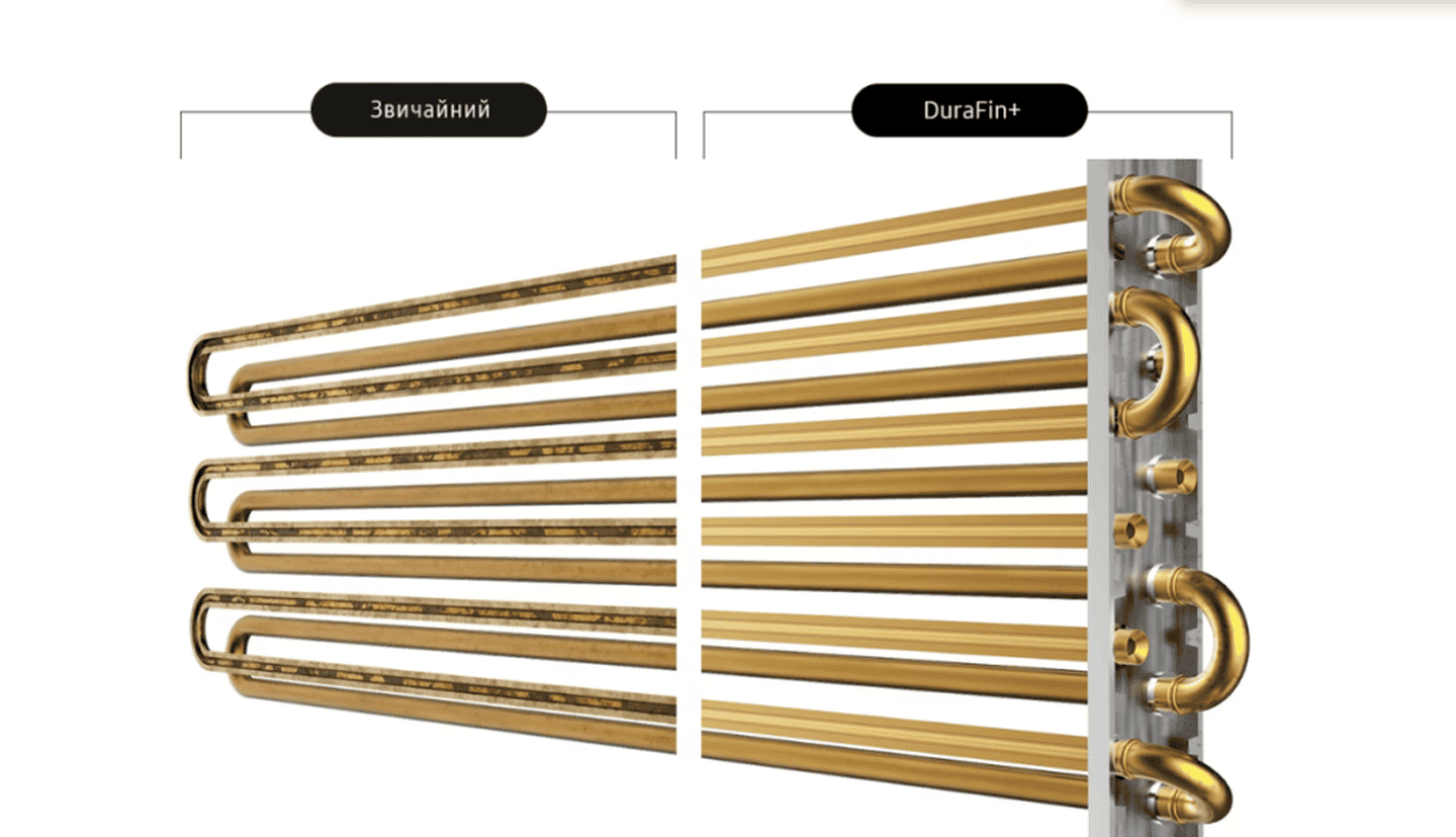 Коррозионно-стойкий материал DuraFin+: Продлевает срок службы кондиционера, защищая его от ржавчины и атмосферного воздействия.