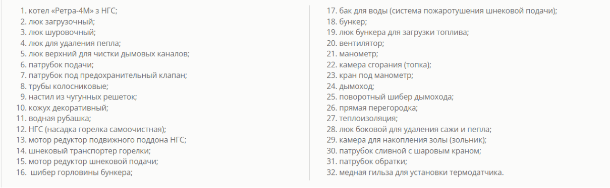 Бункер для автоматической подачи: Бункер выполнен в виде срезанной пирамиды и устанавливается на ровную площадку в котельной. Основной составляющий элемент бункера — корпус, изготовленный из листовой стали. Бункер предназначен для бесперебойной и своевременной подачи топлива: