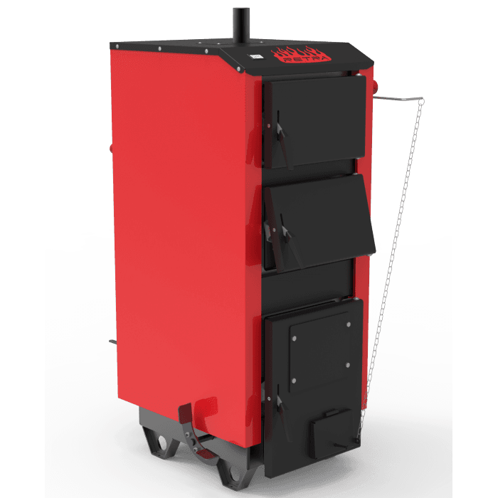 Котел Retra-5М Basic 10 кВт имеют в своей конструкции две горизонтальные перегородки. Стенки теплообменника и прямые перегородки охлаждаются водой, образуя «водяную рубашку». Процесс горения происходит в камере сгорания на водоохлаждаемых колосниковых решетках, под которыми расположена камера поддувала (зольник). Дымовые газы проходят через конвективные каналы теплообменника и попадают в дымоход.