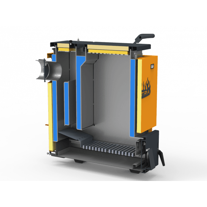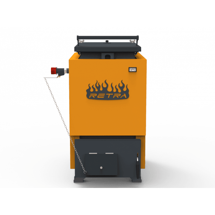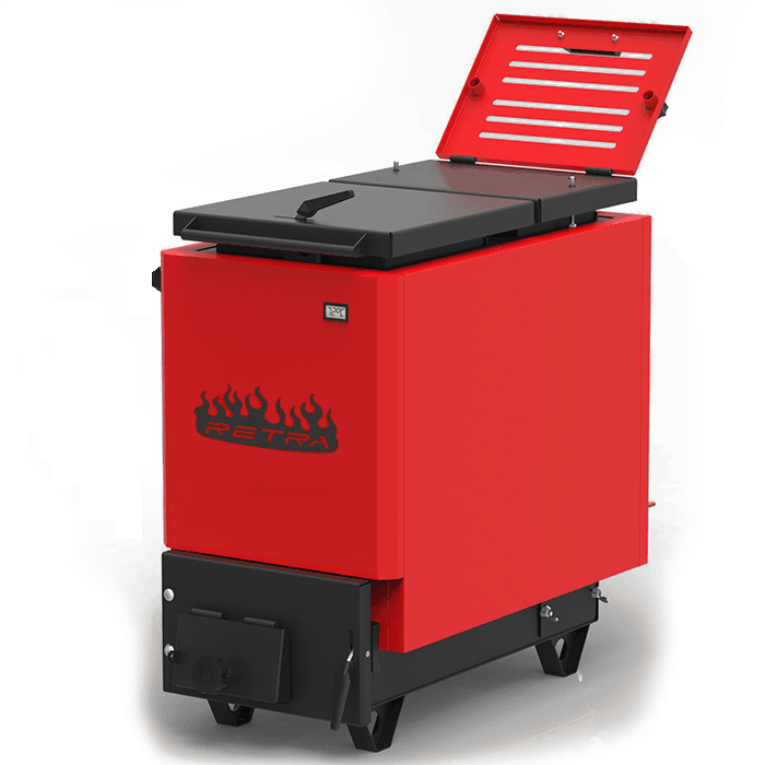 Снаружи котел обшит декоративным кожухом, который изготовлен из листовой стали и покрыт порошковой краской. Между теплообменником и кожухом декоративным размещен слой теплоизоляции. Подача воздуха регулируется шиберами, которые размещены в боковой части обшивки котла (слева и справа). Для котлов «Retra-6М Comfort» предусмотрено место для установки электротэна.