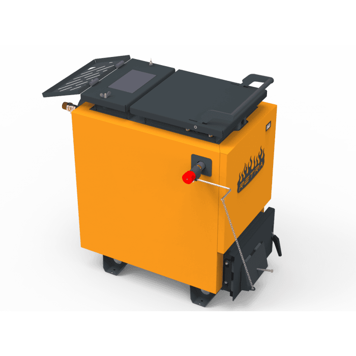 Управление: ручное с помощью люка поддувала, возможна установка механического регулятора тяги или электронного блока управления (контроллера) для автоматического контроля процесса горения и работы насоса центрального отопления.