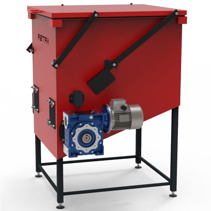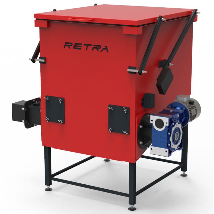 Бункер під щепу призначений для безперебійної та своєчасної подачі палива (пелети, стружка, щепа) з відносною вологістю не більше 40% та фракцією транспортує мого матеріалу не більше 40х20х10 мм в топку водогрійних котлів.