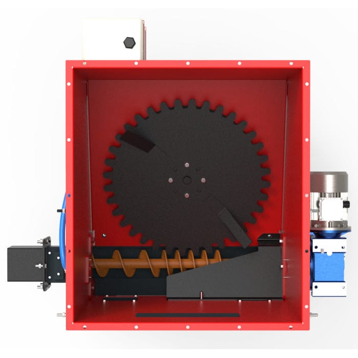 Если температура продолжает снижаться, включается нижний вентилятор первичного воздуха, что обеспечивает интенсивное догорание топлива на первичном воздухе, поднимая температуру до заданного уровня.