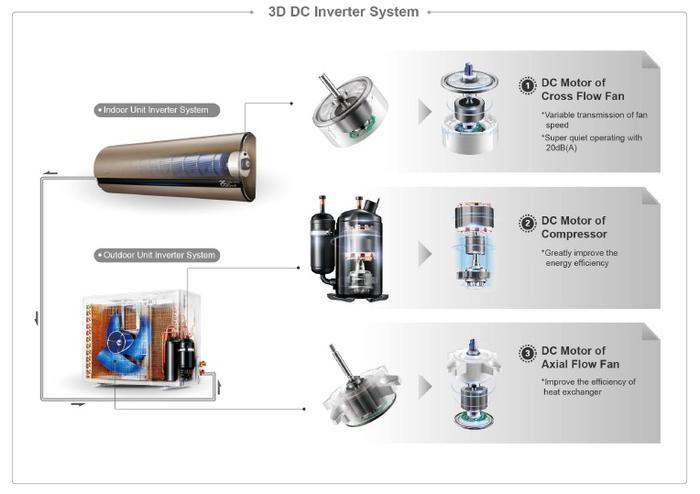 • Точное поддержание температуры: Благодаря возможности постепенного изменения мощности компрессора, система Full DC-inverter обеспечивает точное поддержание заданной температуры в помещении, минимизируя перепады температуры и обеспечивая комфорт для пользователей.