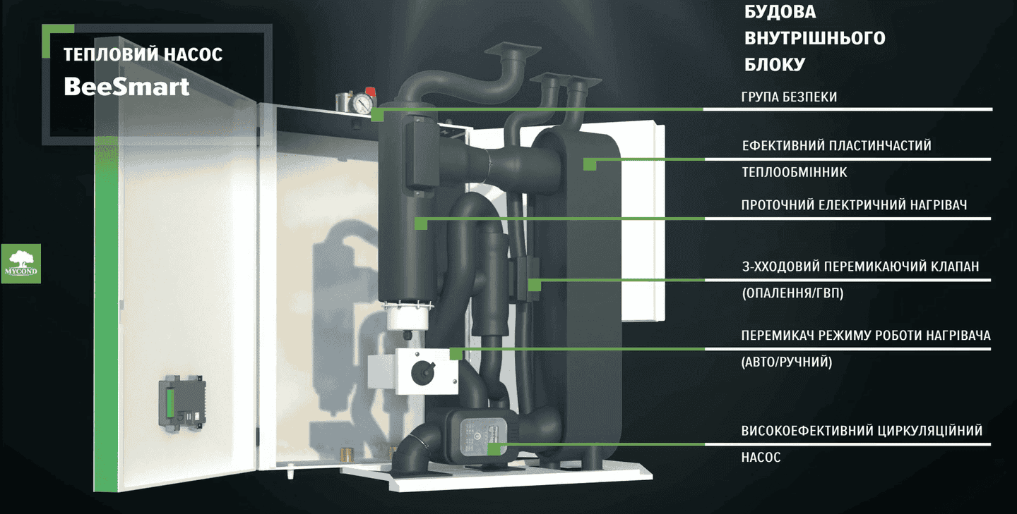 MYCOND BeeSmart — это надежный тепловой насос с тепловой мощностью 9,2 кВт для отопления, охлаждения и подогрева воды. Регулятор обеспечивает погодозависимое отопление/охлаждение, комфортное горячее водоснабжение и управление дополнительным источником тепла. Mycond BeeSmart разработан для экономии энергии с возможностью комбинирования различного оборудования. Система управления EcoTouch обеспечивает оптимизацию энергопотребления.