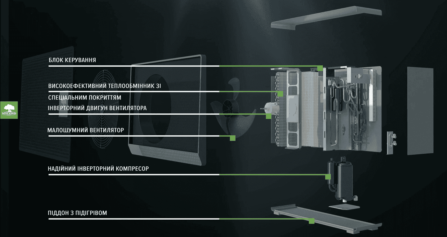 - Электронный терморегулирующий вентиль (EEV): автоматическое регулирование потока хладагента для оптимальной эффективности.