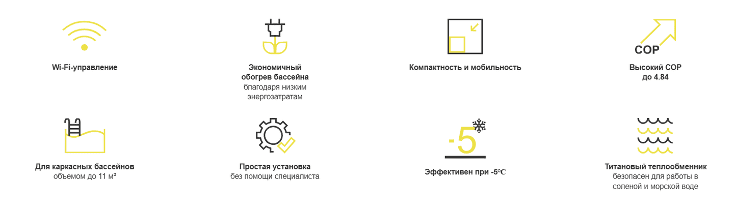Благодаря встроенному модулю Wi-Fi, пользователь может управлять насосом прямо со смартфона. Специальное приложение позволяет запускать или останавливать устройство, изменять температуру и контролировать параметры работы удаленно — где бы вы ни находились.